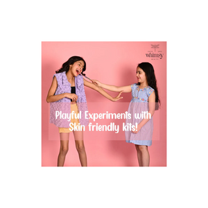 Whimsy Funky Pouch Consist of Organic products 1 Red Dew lip and cheek tint, 1 Added Gold Eye glitter, 1 Baby Pink Lip Gloss, Set of 2 Mermaid brushes. Perfect to create a complete look.